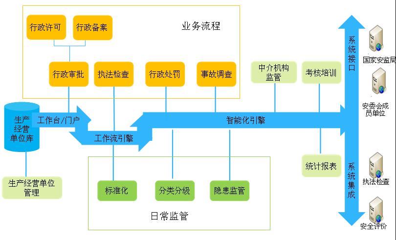依托國家和地方政務(wù)信息資源,建成覆蓋全省各級安全生產(chǎn)監(jiān)管部門、各級安委會成員單位之間互聯(lián)互通的信息網(wǎng)絡(luò)平臺和安全,本系統(tǒng)將建立統(tǒng)一的企業(yè)信息服務(wù)交互出口,向企業(yè)采集相關(guān)信息,并提供安監(jiān)信息服務(wù),實現(xiàn)隱患排查治理、監(jiān)管監(jiān)察、應(yīng)急救援等業(yè)務(wù)工作的數(shù)字化、流程化、網(wǎng)絡(luò)化和智能化管理。建立資源共享、應(yīng)急協(xié)同機制,實現(xiàn)安監(jiān)系統(tǒng)與安委會成員單位之間的資源共建共享,信息互通,技術(shù)相互支持、展開聯(lián)合應(yīng)急行動、共同應(yīng)急處置,從而進一步提高應(yīng)急反應(yīng)速度和應(yīng)急處置能力,有效降低和減少重特大安全生產(chǎn)事故和其他突發(fā)事件帶來的影響和損失。