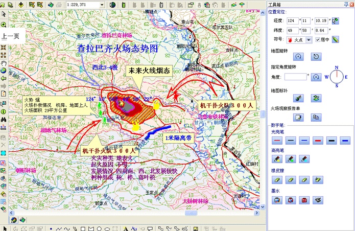方便了觀察員在空中的作業(yè),觀察員可以用標(biāo)繪儀的“磁筆”把要反映的災(zāi)區(qū)信息標(biāo)繪在態(tài)勢圖上。方便專家標(biāo)繪火場。