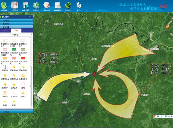 偵查標(biāo)繪系統(tǒng)可采集GPS信號,實現(xiàn)了在電子地圖上進行實時領(lǐng)航。觀察員可隨時在屏幕上看到自己的位置、坐標(biāo)、航跡、 航線、航向、高度、速度、偏航距離等領(lǐng)航信息,又可直觀地在電子地圖上看到所在位置周圍的地物、地貌信息。標(biāo)繪系統(tǒng)方便簡單的操作步驟,更適合實戰(zhàn)應(yīng)用。同樣,救援隊伍亦可隨時知道自己的準(zhǔn)確地理位置,并且指揮員可以利用GPRS和CDMA無線網(wǎng)絡(luò),將標(biāo)繪好的火場態(tài)勢圖和文字形式的火情報告及時上傳到上級應(yīng)急指揮部門。