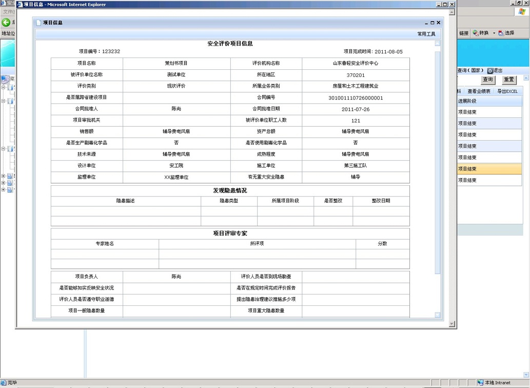 除此之外,系統(tǒng)還可擴展一些外延功能。在對企業(yè)進行安全評價過程中發(fā)現(xiàn)的問題和隱患能夠為安監(jiān)部門提供執(zhí)法檢查重點與關鍵信息,使執(zhí)法檢查工作更加具有針對性,有助于執(zhí)法質(zhì)量和執(zhí)法效率的提高;系統(tǒng)中涉及到的建設項目數(shù)據(jù)也能夠為安監(jiān)部門各個職能處室提供規(guī)范化、準確化的業(yè)務數(shù)據(jù),方便其對企業(yè)進行網(wǎng)絡化、精細化的管理。