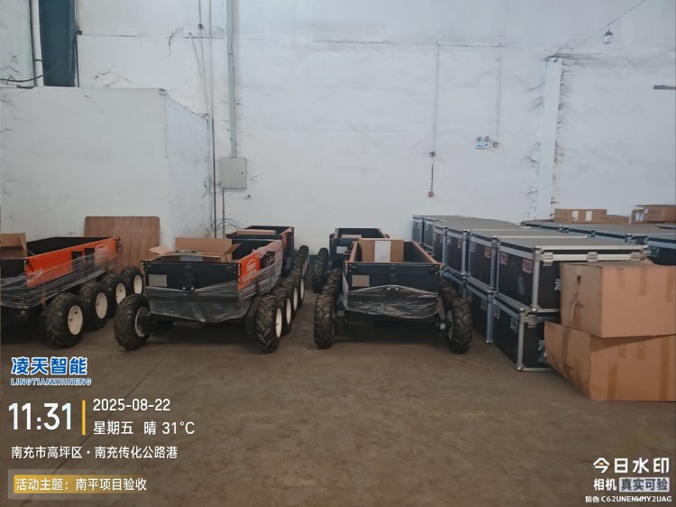 為應對野外山地、叢林、泥濘等非結構化地形,采用8輪與獨立懸掛的輪式底盤,平穩(wěn)適配崎嶇場地,穩(wěn)定穿越 陡坡、臺階、沙石地等,彌補輪式機器人在復雜地形的短板。同時可在 - 20℃至 50℃的寬溫區(qū)間穩(wěn)定作業(yè)。