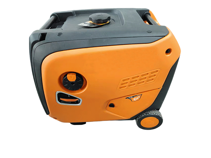輸出功率為4千瓦,具備手拉啟動、電啟動和遙控啟動三種啟動方式。機身設有旋轉開關、手拉柄、加機油口等。配備消音器及防燙護罩,帶有兩個輪子,方便移動。面板上有兩個USB插孔、一個點煙器12V輸出、兩個230V輸出通用五孔插座、一個電壓表以及交流輸出兩個插孔和接地螺絲。