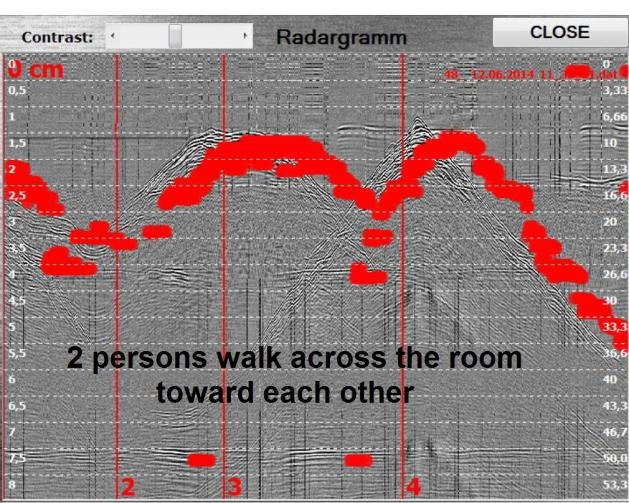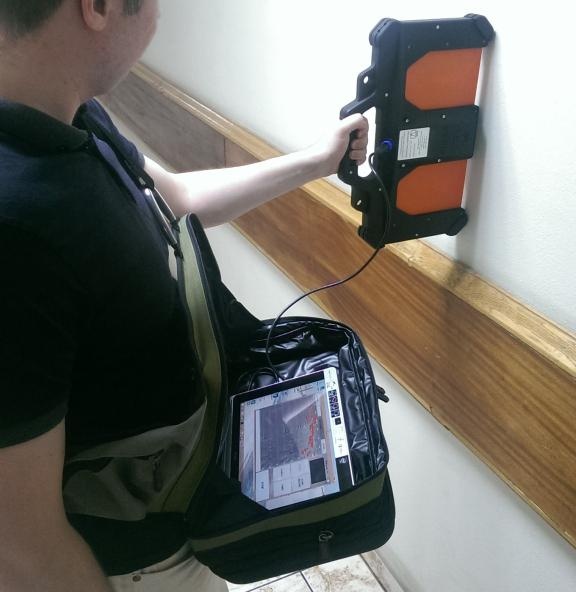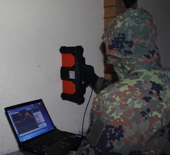 該裝置的操作原理是操作者將天線模塊導(dǎo)向墻壁。 然后即可在計算機屏幕上觀察當(dāng)物體在墻后移動時反射信號的雷達(dá)圖的變化。