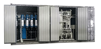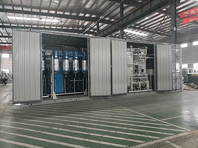 將全套制氮設(shè)備以集裝箱式獨(dú)立模塊呈現(xiàn),使用過(guò)后方便運(yùn)輸遷移