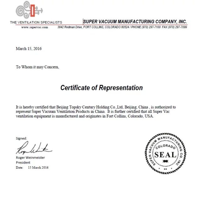 美國(guó)SUPER公司正式授權(quán)北京凌天世紀(jì)控股股份有限公司作為其機(jī)動(dòng)排煙機(jī),水驅(qū)動(dòng)排煙機(jī),電池驅(qū)動(dòng)排煙機(jī)在華的總代理。 SUPER是世界知名消防排煙裝備制造商。