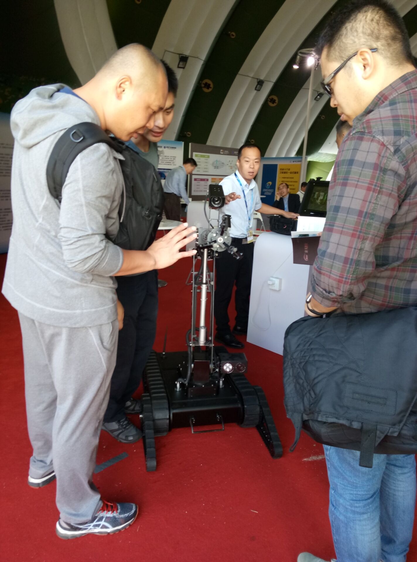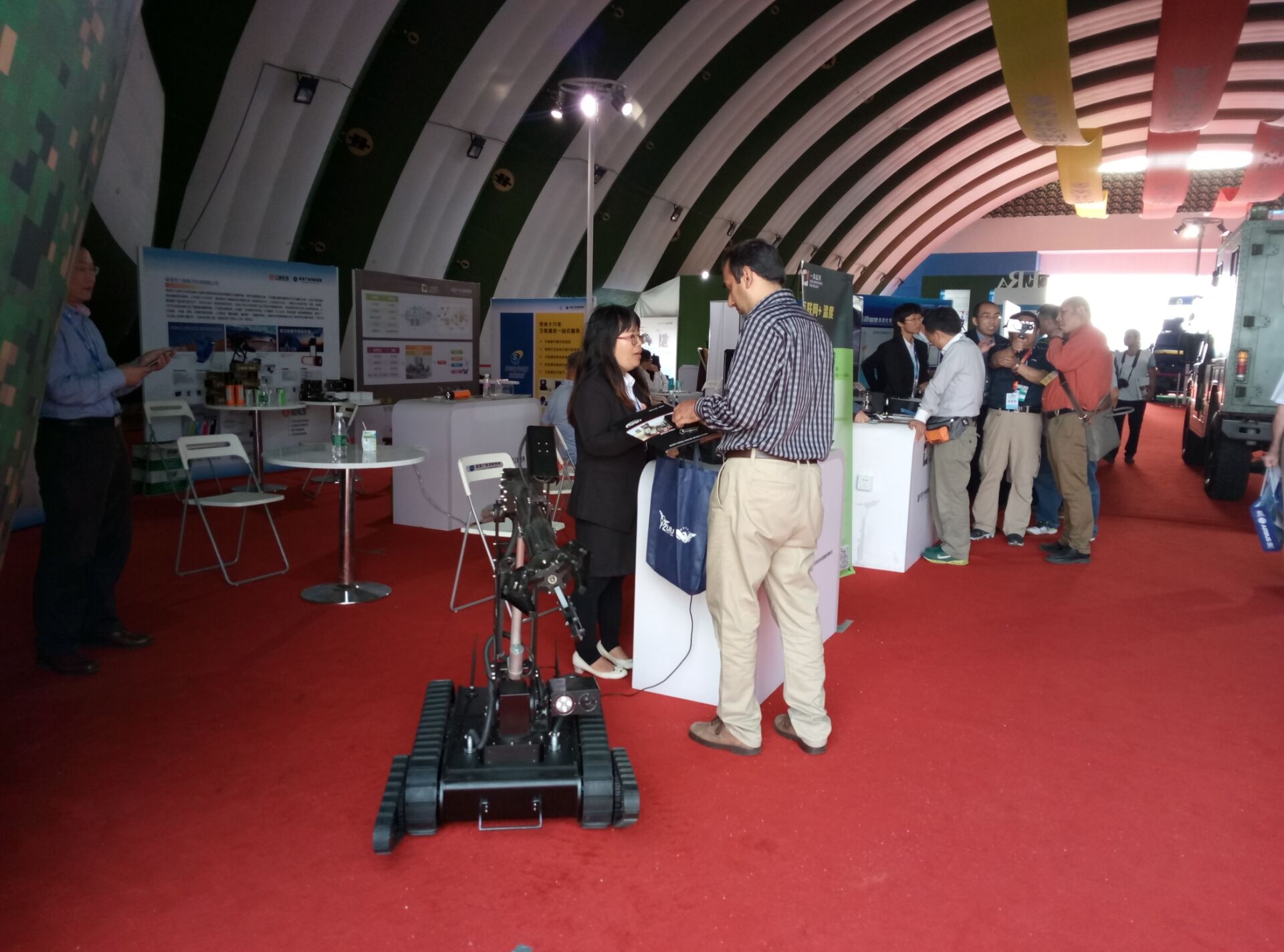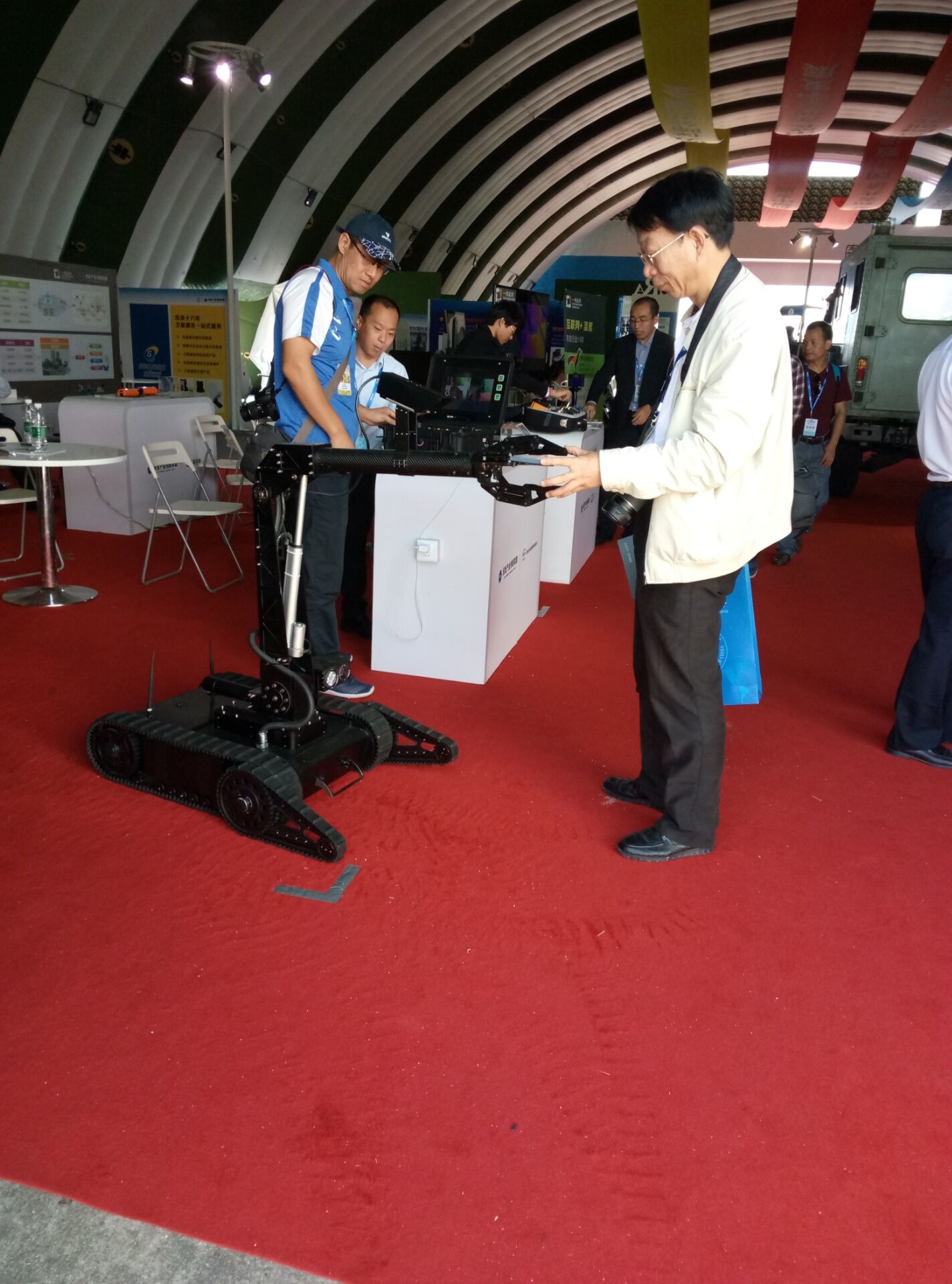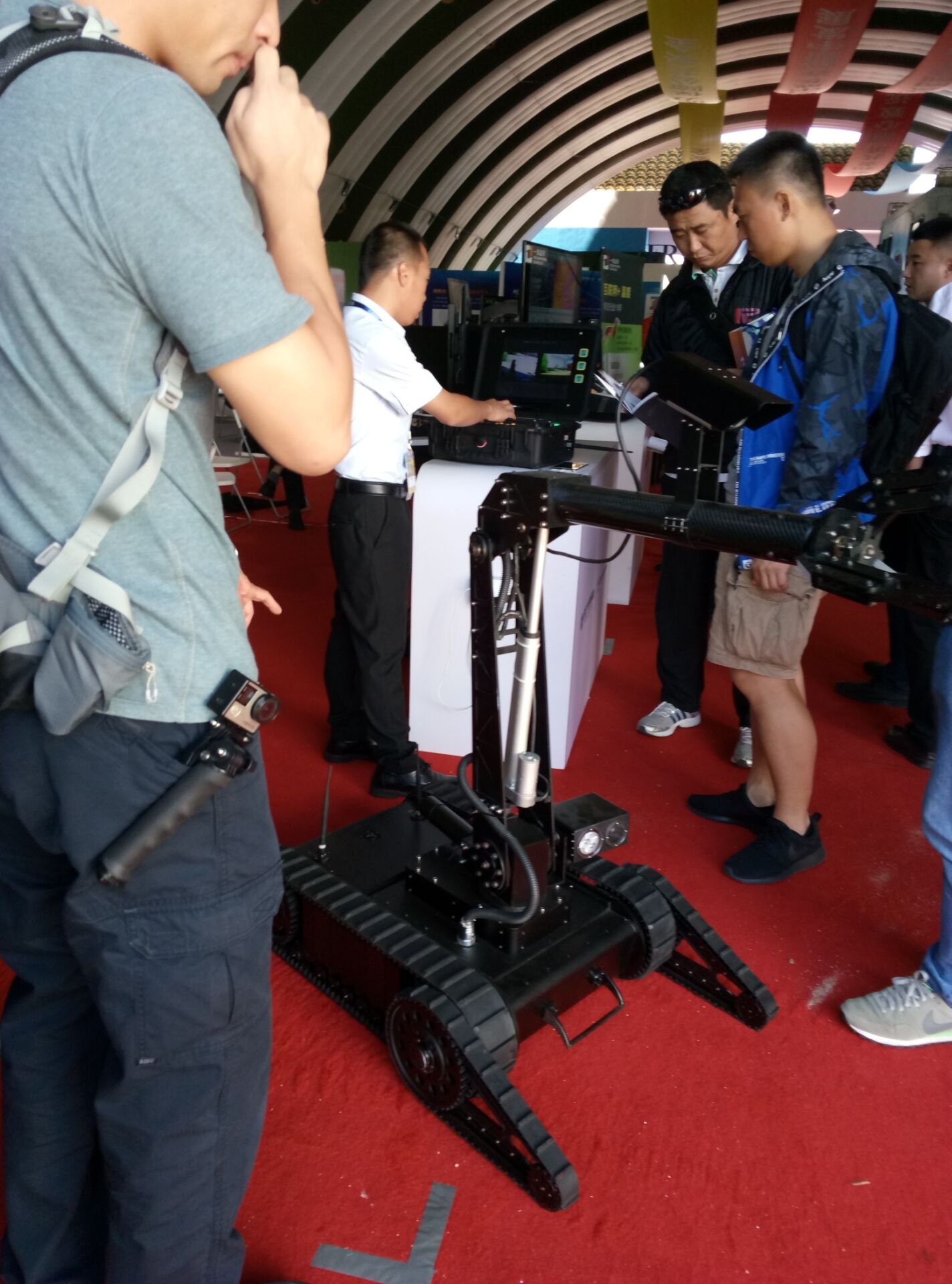 北京凌天自主研發(fā)的ER3排爆機(jī)器人首次亮相了本屆航展,該款機(jī)器人是一款小型模塊化排爆機(jī)器人,可用作武裝偵查、排爆、搭載槍械及小型發(fā)射武器等作業(yè)。