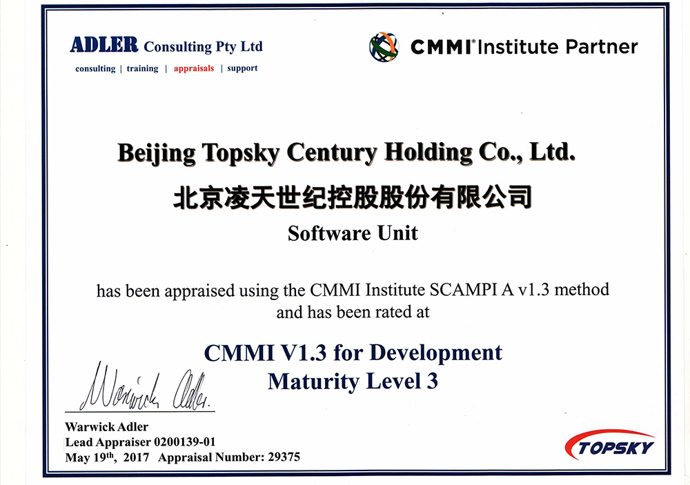 CMMI認(rèn)證的取得是北京凌天在高科技裝備發(fā)展的一次重要的里程碑,標(biāo)志著凌天在軟件設(shè)計、開發(fā)、項目管理及為用戶提供高質(zhì)量產(chǎn)品方面達(dá)到了國際化水平。