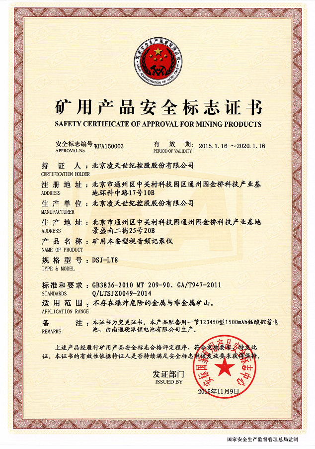 北京凌天防爆執(zhí)法記錄儀取得3c強(qiáng)制性認(rèn)證、化工防爆、煤礦防爆、MA