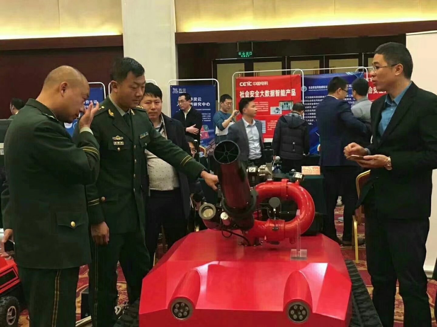 需求牽引,貼近實戰(zhàn),科技強(qiáng)警,科技興安,科學(xué)救援,用科技提北京城市安全水平,由中關(guān)村管委會主辦的中關(guān)村智慧公共安全新技術(shù)新產(chǎn)品供需對接會18號在北京舉行,北京市公安局、消防局、安監(jiān)局、市屬高校、市屬國企及區(qū)縣政府部門的80余家用戶單位200余人共同參加了活動,現(xiàn)場氣氛熱烈,供需雙方都有收獲。北京凌天主要負(fù)責(zé)人作《智慧公共安全關(guān)鍵技術(shù)裝備》的專題報告,向參會專家介紹了北京凌天將機(jī)器人,人工智能,物聯(lián)網(wǎng)技術(shù)應(yīng)用于公共安全的最新技術(shù)成果。來自警保,特警,消防后勤裝備,安監(jiān)科技規(guī)劃等使用部門的專家,對消防滅火偵察機(jī)器人,全地形排爆機(jī)器人,消防偵察機(jī)器人,應(yīng)急救援快速部署系統(tǒng),安監(jiān)巡邏車,安全監(jiān)管立體化預(yù)警預(yù)測系統(tǒng)等表示濃厚興趣!