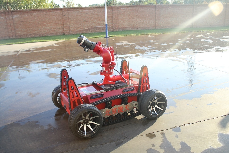 消防滅火機(jī)器人采用履帶+擺臂+輪式的底盤(pán)設(shè)計(jì),能夠適應(yīng)救援環(huán)境中各種復(fù)雜地面。裝配環(huán)境檢測(cè)裝置,在滅火的同時(shí)對(duì)現(xiàn)場(chǎng)環(huán)境數(shù)據(jù)進(jìn)行偵測(cè)。消防滅火偵查機(jī)器人由機(jī)器人主體,消防炮,環(huán)境檢測(cè)裝置,遙控箱四部分組成。主要作用是代替消防隊(duì)員進(jìn)入易燃易爆、有毒、缺氧、濃煙等危險(xiǎn)災(zāi)害事故現(xiàn)場(chǎng)實(shí)施有效的滅火救援、化學(xué)檢測(cè)和火場(chǎng)偵察。