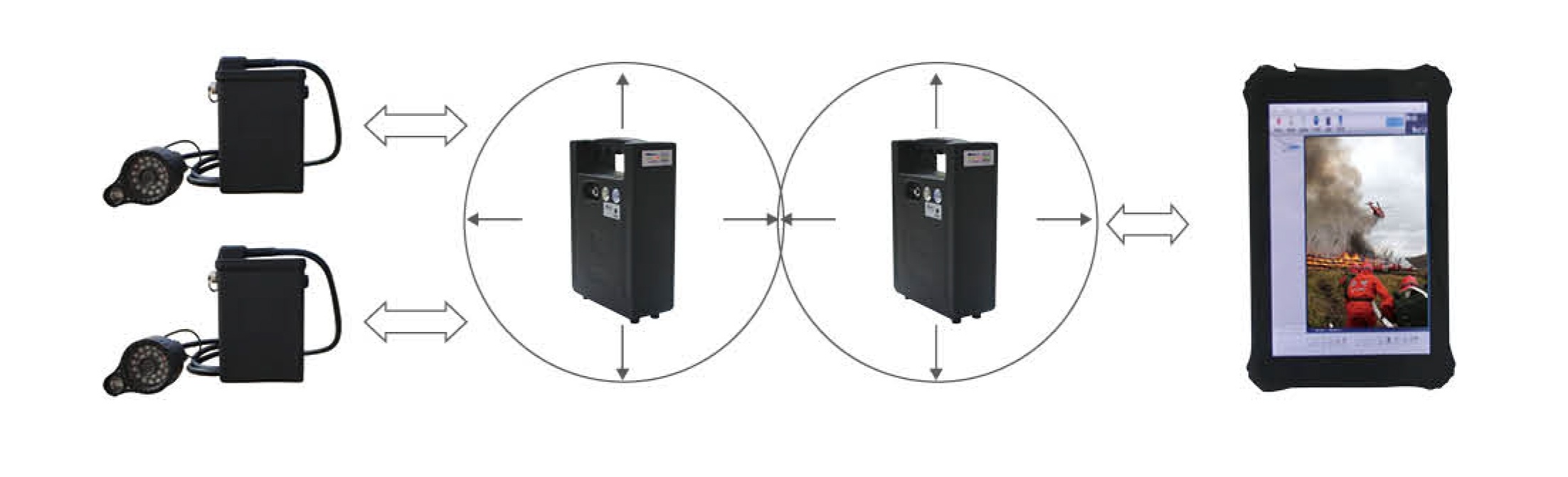 該裝置采用無線連接方式的信號中繼與傳輸,應急通信網(wǎng)絡的通信距離可達20公里。無線通信網(wǎng)絡采用自組織、自愈合方式快速形成多跳鏈狀或網(wǎng)狀網(wǎng)拓撲結構,無線通信距離不小于2000米,具有快速部署、高帶寬、低時延、可靠性強等特點。井下救援人員或工作人員,通過佩戴礦用本安型平板計算機、配套的低照度攝像頭自帶語音通話、無線中繼器、多參數(shù)測定儀等裝備,將現(xiàn)場的實時圖像、語音、環(huán)境參數(shù)等信息實時回傳到指揮平臺,調度指揮人員可以實時了解現(xiàn)場情況,并對現(xiàn)場人員進行調度指揮。