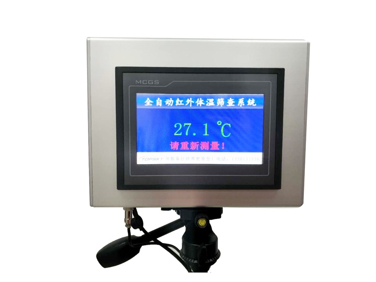 全自動紅外體溫篩查系統(tǒng)是由非接觸式紅外探頭,傳感器,光 學(xué)系統(tǒng),智能檢測控制系統(tǒng),高清7寸觸摸顯示屏等部分組成.能夠 在不接觸人體的情況下,依據(jù)人體發(fā)射紅外輻射強(qiáng)度,轉(zhuǎn)換成實際 的溫度數(shù)值,并通過人機(jī)交互界面進(jìn)行顯示和報警.高清屏幕顯示, 可保證測量結(jié)果清晰可見,高溫聲光報警有助于工作人員快速篩 查可疑人員;該產(chǎn)品可以同三腳架搭配 使用,方便攜帶和快速部署,可應(yīng)用于機(jī) 場、港口、車站、學(xué)校、賓館和醫(yī)院等 公共場所的體溫篩檢;