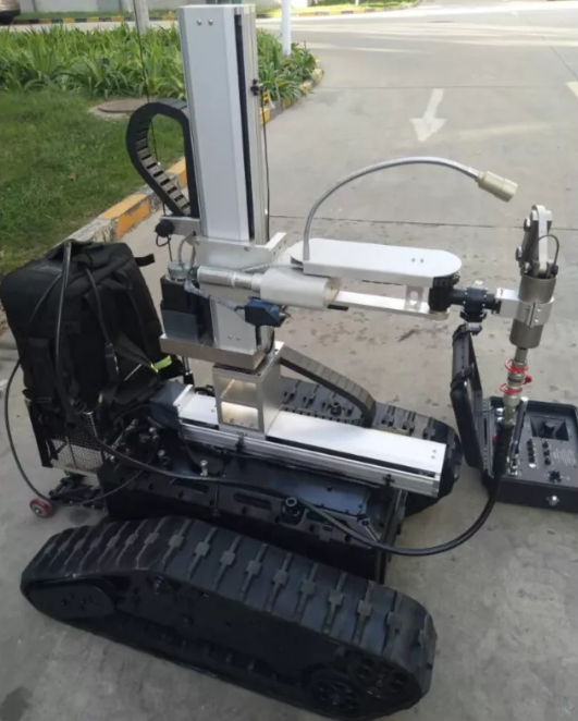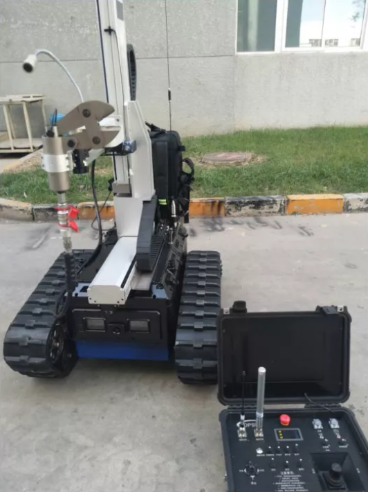 破拆機(jī)器人,也可用于遠(yuǎn)程遙控偵察人難以達(dá)到的地形的一種機(jī)器人。機(jī)器人配備十字滑臺(tái),靈活調(diào)動(dòng)工具的工作位置,可加載手持式切割機(jī),還可以加載獨(dú)立電動(dòng)液壓工具其包括:微型開門器、微型擴(kuò)張器、微型剪切器之間可以靈活更換,底盤采用履帶結(jié)構(gòu),能適應(yīng)各種地形快速作戰(zhàn)部署。