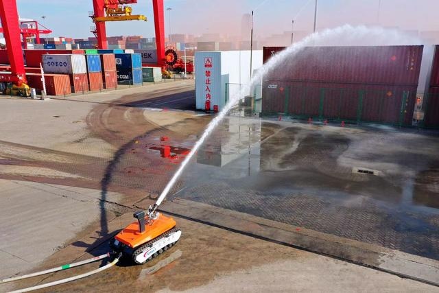 記者在現(xiàn)場看到,長2.2米、寬1.45米,外形酷似“小坦克”的滅火機器人,在工作人員的無線遙控操作下,前面“瞪”著雙眼、后面拖著水管,迅速靠近火勢最猛烈的地方,精準有力地將水噴向燃爆中心,不僅防爆防水,而且水泡射程超過90米!