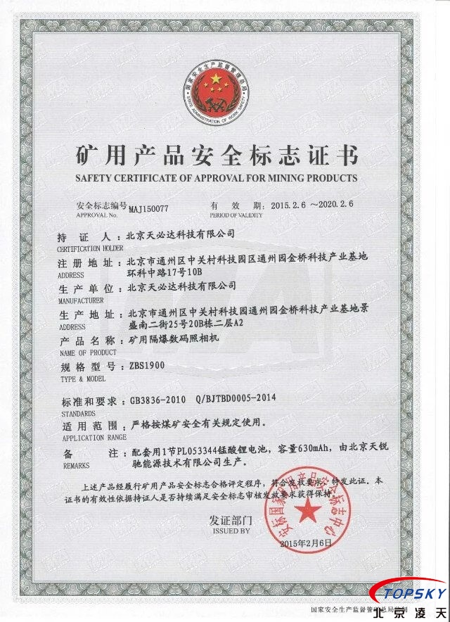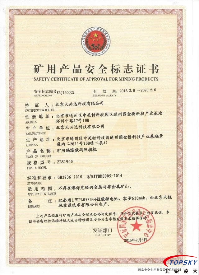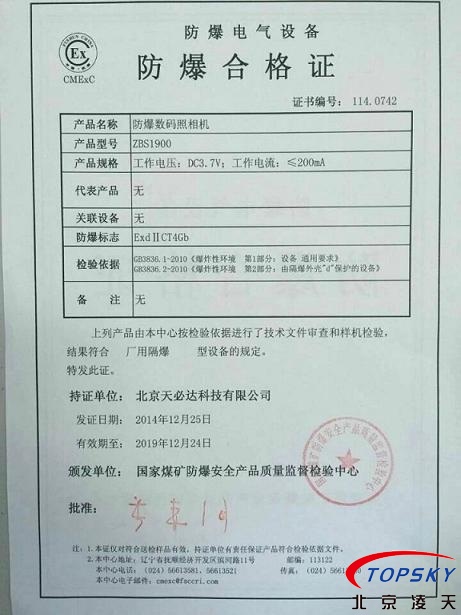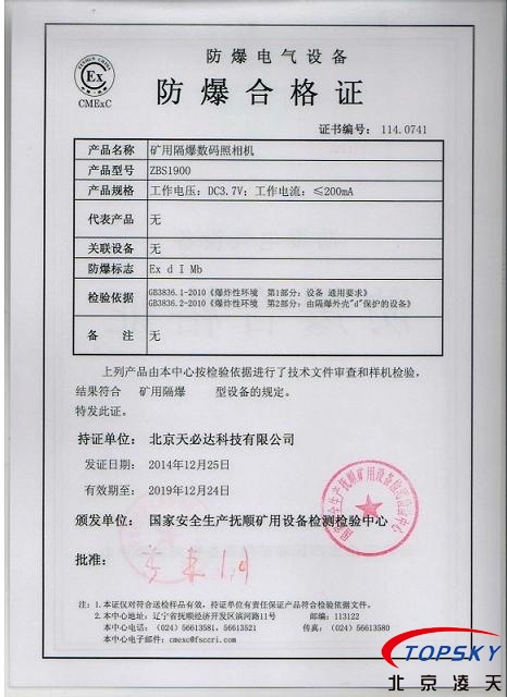 ▲12、提供煤安標志證書、礦山防爆證書(Exd I Mb),化工防爆證書(Exd IICT4 Gb )證書原件。