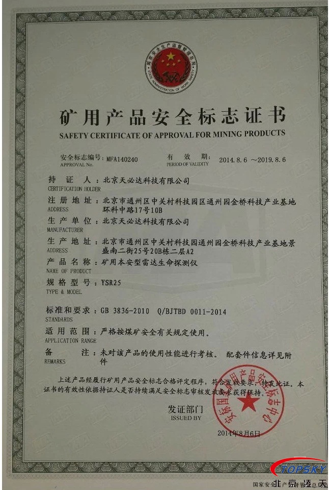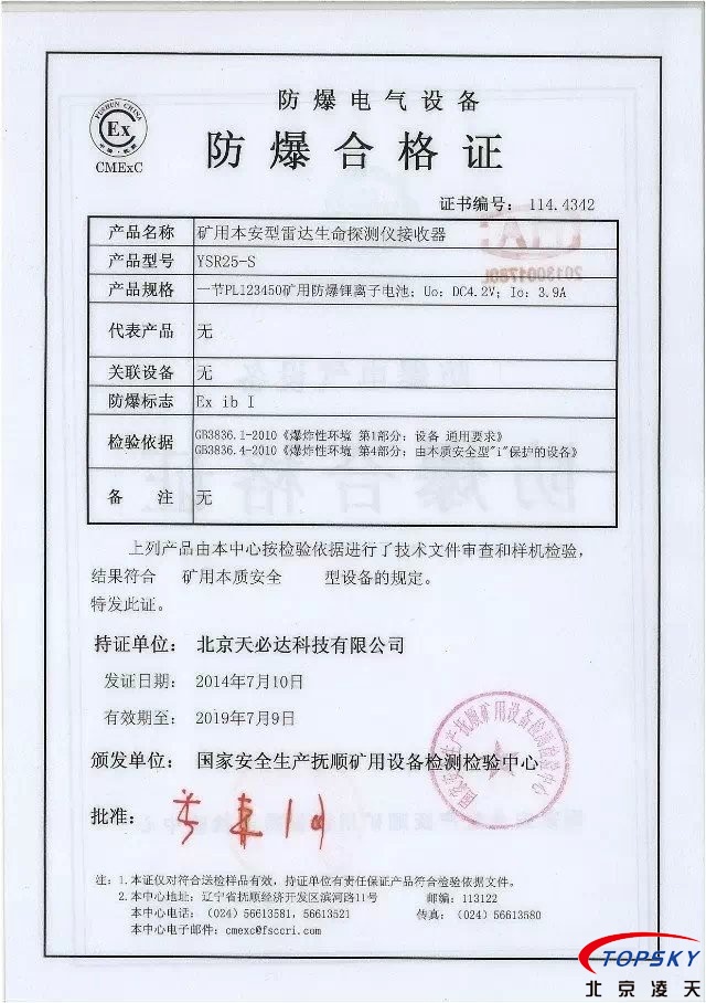 從國家安標(biāo)中心獲悉,YSR25本安型雷達(dá)生命探測儀取得煤安標(biāo)志認(rèn)證(證書見下圖),自此,國內(nèi)本安型可用于爆炸性環(huán)境的探人雷達(dá)取得完整下井資質(zhì),從研制方獲悉,該設(shè)備已在山西陽泉煤業(yè)集團救護大隊、山西潞安集團救護大隊、開灤集團救護大隊進行過工業(yè)性試驗,試驗效果良好,探測距離達(dá)到25米(報告見下圖)!
