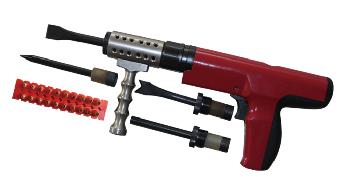 3、射擊時,將毀鎖槍垂直在障礙面上,扣扳機擊發(fā),如未擊發(fā),需繼續(xù)保持緊壓工作面30秒種,才能拿起毀鎖槍,并重新供彈擊發(fā)。一次擊發(fā)后,用力將槍管拉出到最外端,然后用力再將之推到底,就完成一次退殼供彈過程,可進行下一步擊發(fā)。平鏟用于鏟斷鎖鏈、護欄、螺栓等,圓柱鏟可用于擊毀鎖芯等。V型鑿可切斷鋼筋,切開鐵板等,尖鑿可對鐵皮打孔等。