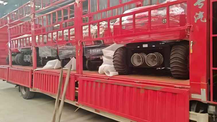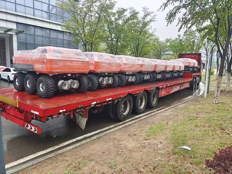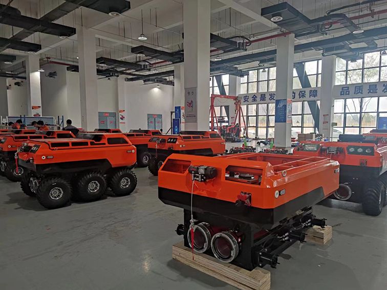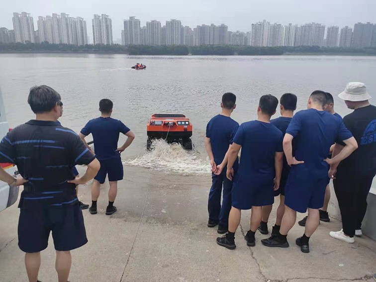 水陸兩棲 采用6×6輪式,液壓驅動,水陸兩棲,可全地形行駛??稍谒掀⌒羞M,適合多種救援場景。