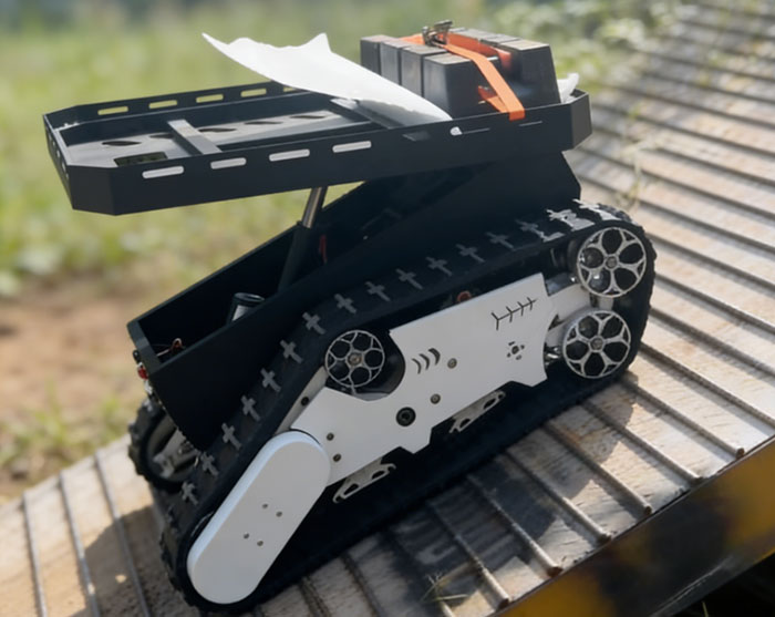 底盤采用橡膠橫紋履帶與先進避震系統(tǒng),搭配輕量化一體壓鑄鋁輪及耐用材質(zhì),可實現(xiàn)常規(guī)爬坡、極限爬坡,適配多地形穿行,保障復雜環(huán)境穩(wěn)定運行。
