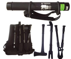 破門工具背包 (DE-TBK):包括DE-SOHT鐵筆 、DE-BM剪鉗、DE-TM鐵斧、背包袋。(背包為1000 Denier NyTaneon 尼龍物料,鋪有護(hù)背海綿和可調(diào)式肩帶。);全套總重11公斤