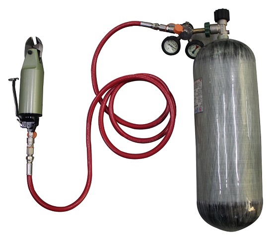 礦井錨護(hù)網(wǎng)的拆除比較復(fù)雜繁瑣,常規(guī)的辦法采用手動(dòng)鋼筋鉗,存在勞動(dòng)量大、效率低等諸多問(wèn)題,QSD-4.5礦用氣動(dòng)剪斷裝置(氣動(dòng)鐵絲速斷器)是一款能連續(xù)快速剪切鐵絲的設(shè)備,采用氣動(dòng)原理,由井下壓風(fēng)管道提供動(dòng)力,切割范圍:鐵絲、鋼絲、錨護(hù)網(wǎng);最大剪斷直徑: