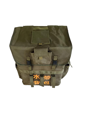 用于背負運輸及鋪設消防水帶,鋪設水帶時,水帶出口端要求相對固定或單兵手持,水帶背包背負人員向前走動時,水帶自然滑出,實現(xiàn)水帶鋪設。