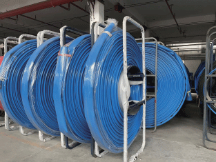 礦用高壓排水軟管采用一次性共擠成型工藝,由TPU內(nèi)襯、編織層和TPU覆蓋層組成。TPU覆蓋層阻燃、抗靜電;編織層內(nèi)含有抗靜電導(dǎo)線,TPU內(nèi)襯可通過水、泡沫液、含油或弱酸堿性等液態(tài)介質(zhì)。這種結(jié)構(gòu)使得軟管重量輕、承壓高、質(zhì)地柔軟、可卷盤、操作方便、鋪設(shè)及撤收機(jī)動靈活。