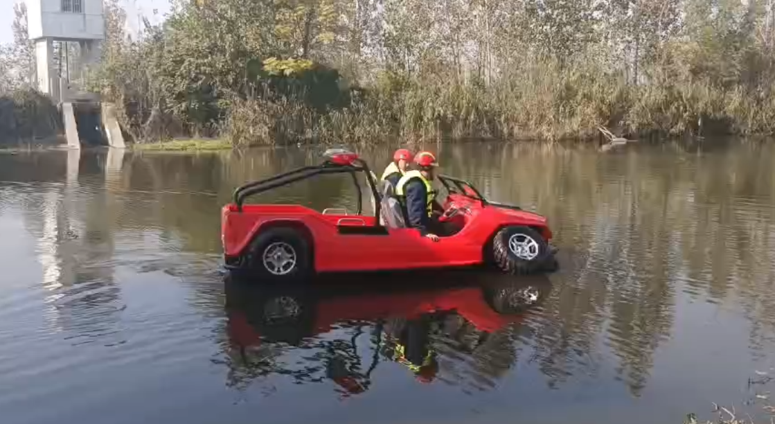 在復(fù)雜惡劣的地形條件和自然環(huán)境下,水陸兩棲車可以讓搜救隊員和攜帶的救援裝備快速到達救援現(xiàn)場,減少徒步帶來提供消耗,完成最后一公里最好五分鐘緊急救援任務(wù)。