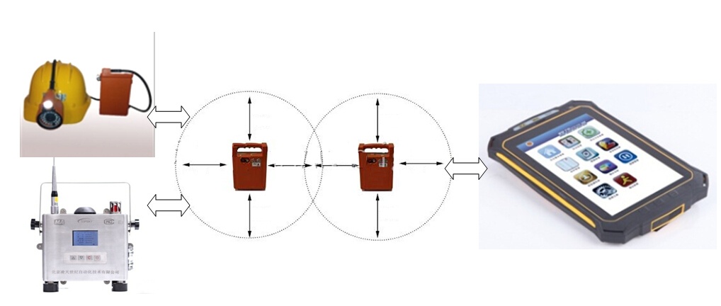 該系統(tǒng)采用無線連接方式的信號中繼與傳輸,應急通信網(wǎng)絡的通信距離可達20公里。無線通信網(wǎng)絡采用自組織、自愈合方式快速形成多跳鏈狀或網(wǎng)狀網(wǎng)拓撲結(jié)構,無線通信距離不小于2000米,具有快速部署、高帶寬、低時延、可靠性強等特點。井下救援人員或工作人員,通過佩戴礦用本安型平板計算機、配套的低照度攝像頭自帶語音通話、無線中繼器、多參數(shù)測定儀等裝備,將現(xiàn)場的實時圖像、語音、環(huán)境參數(shù)等信息實時回傳到指揮平臺,調(diào)度指揮人員可以實時了解現(xiàn)場情況,并對現(xiàn)場人員進行調(diào)度指揮。