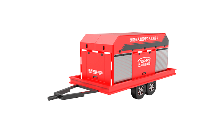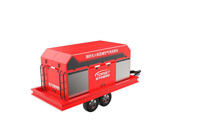 消防無人機壓縮空氣泡沫拖車,采用中置軸掛車為運載平臺,搭載我司自主研發(fā)的水帶系留式重型消防滅火無人機和壓縮空氣泡沫系統(tǒng)(CAFS),自帶水和泡沫滅火劑,具備高效滅火(高效泡沫隔離、冷卻、窒息)、高空破窗,自動避障、展開快速、精準(zhǔn)鎖定火源、多角度控制火點、空中作戰(zhàn)時間長等特點。機身采用純碳纖維和航空鋁材料制作而成,減輕機身自重同時提高物質(zhì)載重量,該無人機具備陸空兩棲功能,可以在地面行駛,行走系統(tǒng)可快拆;可噴射水及壓縮空氣泡沫,使用超輕型浮力水帶噴射的壓縮空氣泡沫密度更輕,可以能快速啟動升空,拖帶水帶升至高空,系統(tǒng)操作穩(wěn)定性更強。