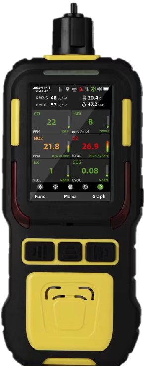 無線復(fù)合氣體探測儀(以下簡稱探測儀)支持二十多種智能氣體傳感器,可同時連續(xù)檢測5種氣體的濃度(氣體種類可自由組合系統(tǒng)智能識別)、粉塵濃度(PM2.5、PM10)、核輻射、溫濕度。將采集到的氣體數(shù)據(jù)、GPS位置、粉塵濃度、核輻射、溫濕度等數(shù)據(jù)通過4G上傳至監(jiān)管后臺實現(xiàn)無線管理;探測儀也可以實現(xiàn)現(xiàn)場實時數(shù)據(jù)一鍵打印功能。探測儀具有氣體濃度調(diào)校標(biāo)定、濃度值超限報警功能、STEL超限報警和TWA超限報警,一旦設(shè)備采集數(shù)據(jù)濃度值超限,設(shè)備立即開啟聲光振動報警進行警示,并將此時數(shù)據(jù)同步上傳至平臺??蓪⒍嗯_探測儀的監(jiān)測、監(jiān)控信息上傳,并建立特殊作業(yè)場所多功能監(jiān)測監(jiān)控系統(tǒng)平臺,保障作業(yè)人員的安全。采用新一代主流外觀設(shè)計,美觀耐用。