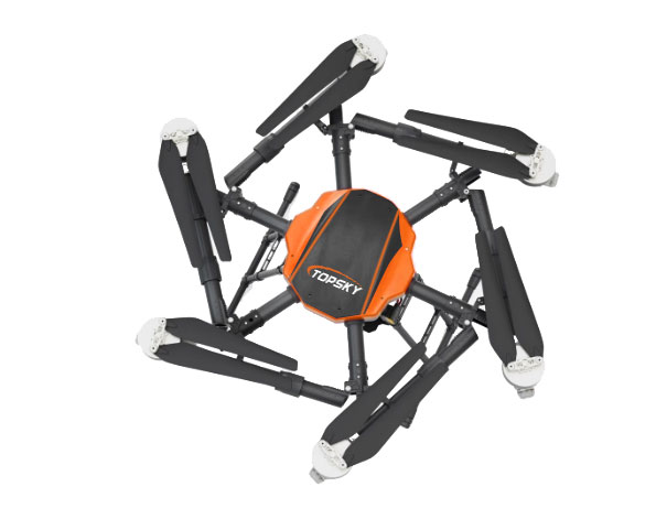 本無人機為北京凌天智能裝備集團(tuán)研發(fā)的多功能偵檢無無人機,采用六旋翼機身設(shè)計,載重大,續(xù)航長,并且機體折疊標(biāo)準(zhǔn)化負(fù)載接口、集成航電系統(tǒng)、核心傳感器雙冗余備份系統(tǒng)。搭載長距離實時通訊鏈路,實時傳輸現(xiàn)場環(huán)境數(shù)據(jù)及無人機飛行數(shù)據(jù)。配備智能控制系統(tǒng),可滿足多種場景和多種方式的作業(yè)需求??纱钶d多種載荷,如:四光吊艙、氣體檢測儀、喊話器,滿足環(huán)境偵查、應(yīng)急教援、安全疏導(dǎo)、氣體檢測、等不同場景的行業(yè)應(yīng)用