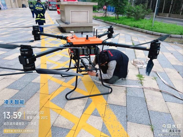 系留滅火無人機是一種新型無人機系統(tǒng),可以掛載消防水帶進行高層滅火。無需架設(shè)云梯,相對傳統(tǒng)高層滅火,可快速飛至火情樓層進行滅火作業(yè) 。在城市高層火災(zāi)中提高滅火效率大大減少人員傷亡,堪稱神兵利器。