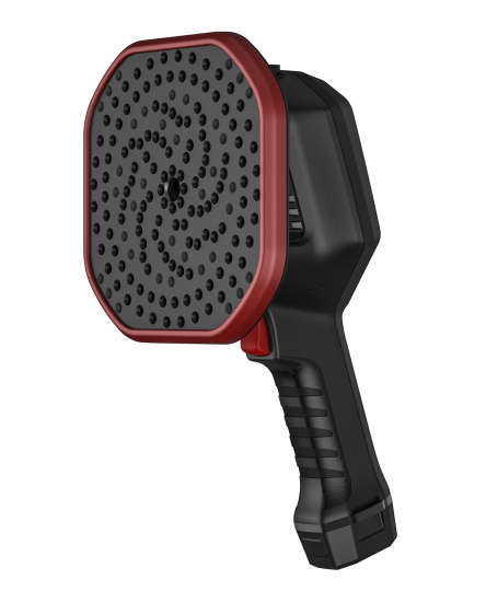 本產品是一款手持式的工業(yè)聲學成像儀,廣泛應用于電力局放,帶壓或真空條件下的氣體泄漏檢測、氣密性檢測、設備異響定位等多種場景。儀器利用麥克風陣列波束形成技術獲取聲源分布數(shù)據,并配合高清攝像頭實時采集視頻畫面,通過將聲源分布數(shù)據同視頻圖像進行聲像融合,把變化的聲源動態(tài)的呈現(xiàn)在顯示屏上。 可以幫助現(xiàn)場巡檢人員快速定位故障,提供處置依據。