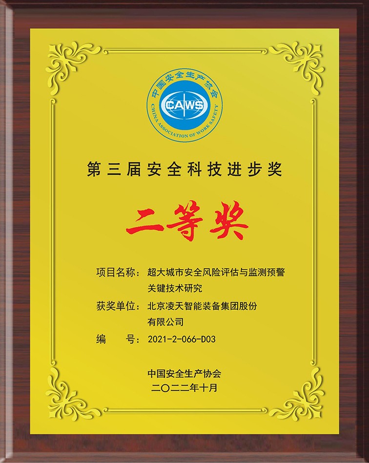 | 獎項類 | 第三屆安全科技進步獎二等獎 | 超大城市安全風險評估與監(jiān)測預警關鍵技術研究 |