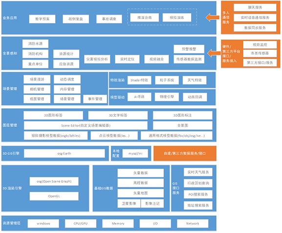 通過虛擬仿真技術(shù)、數(shù)字化技術(shù)等手段,建立一個(gè)與現(xiàn)實(shí)一致的三維實(shí)景數(shù)字空間,基于實(shí)景化的數(shù)字空間,開展基于一張圖的數(shù)字化預(yù)案制作、戰(zhàn)例復(fù)盤、多人協(xié)同演練、推演會(huì)商、事故調(diào)查等應(yīng)用。